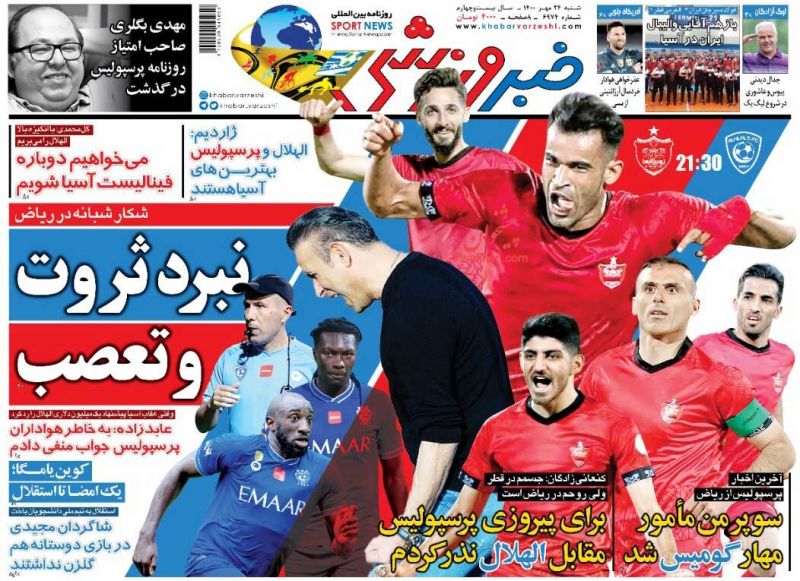 ایران ورزشی ، شنبه ۲۴ مهر