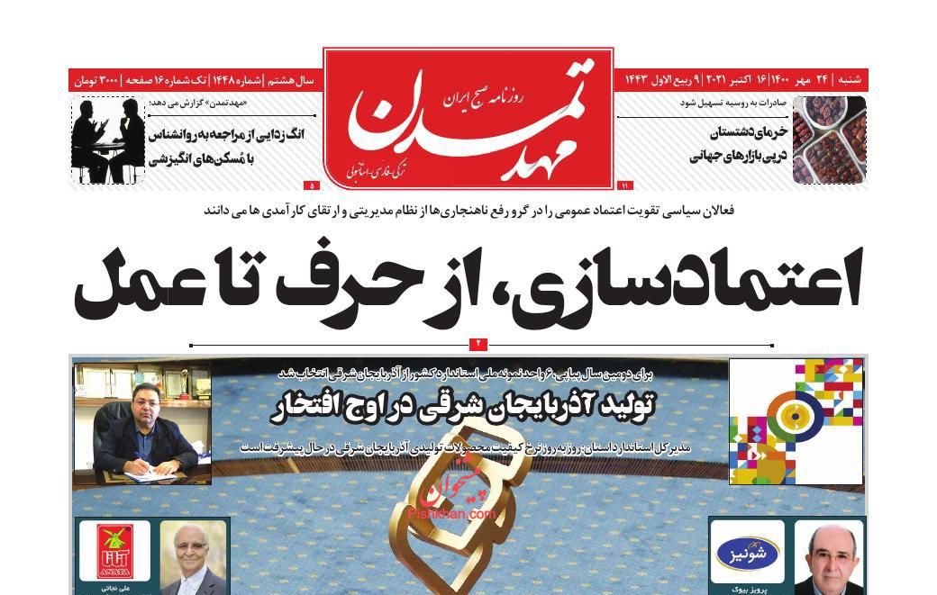 اعتماد ، شنبه ۲۴ مهر