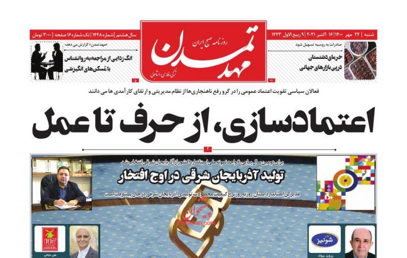 شهروند ، شنبه ۲۴ مهر