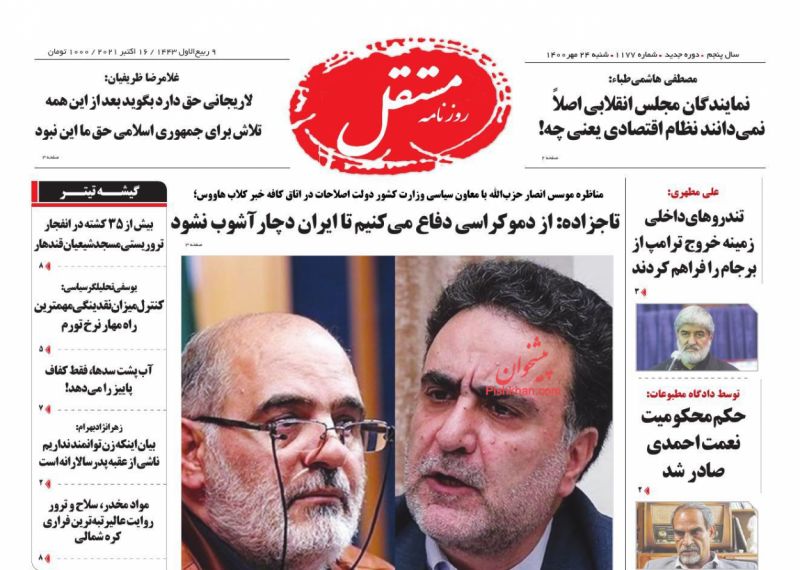 مستقل ، شنبه ۲۴ مهر