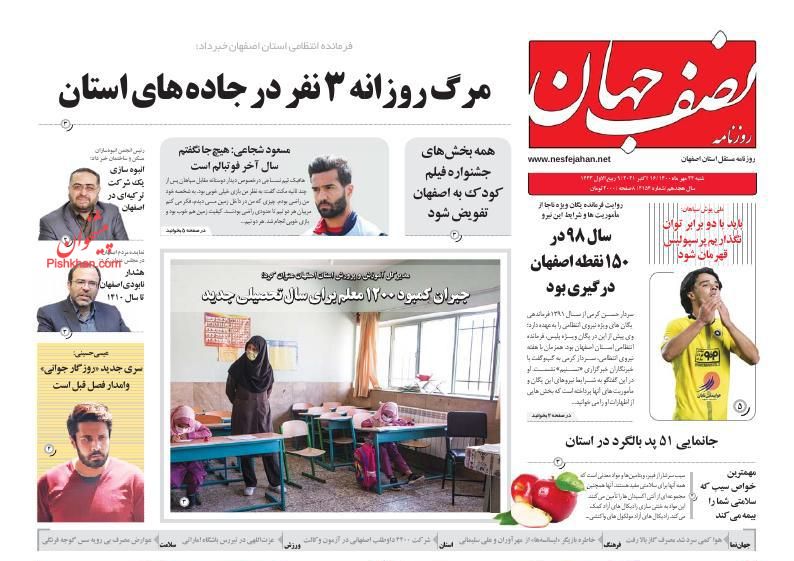 همشهری ، شنبه ۲۴ مهر