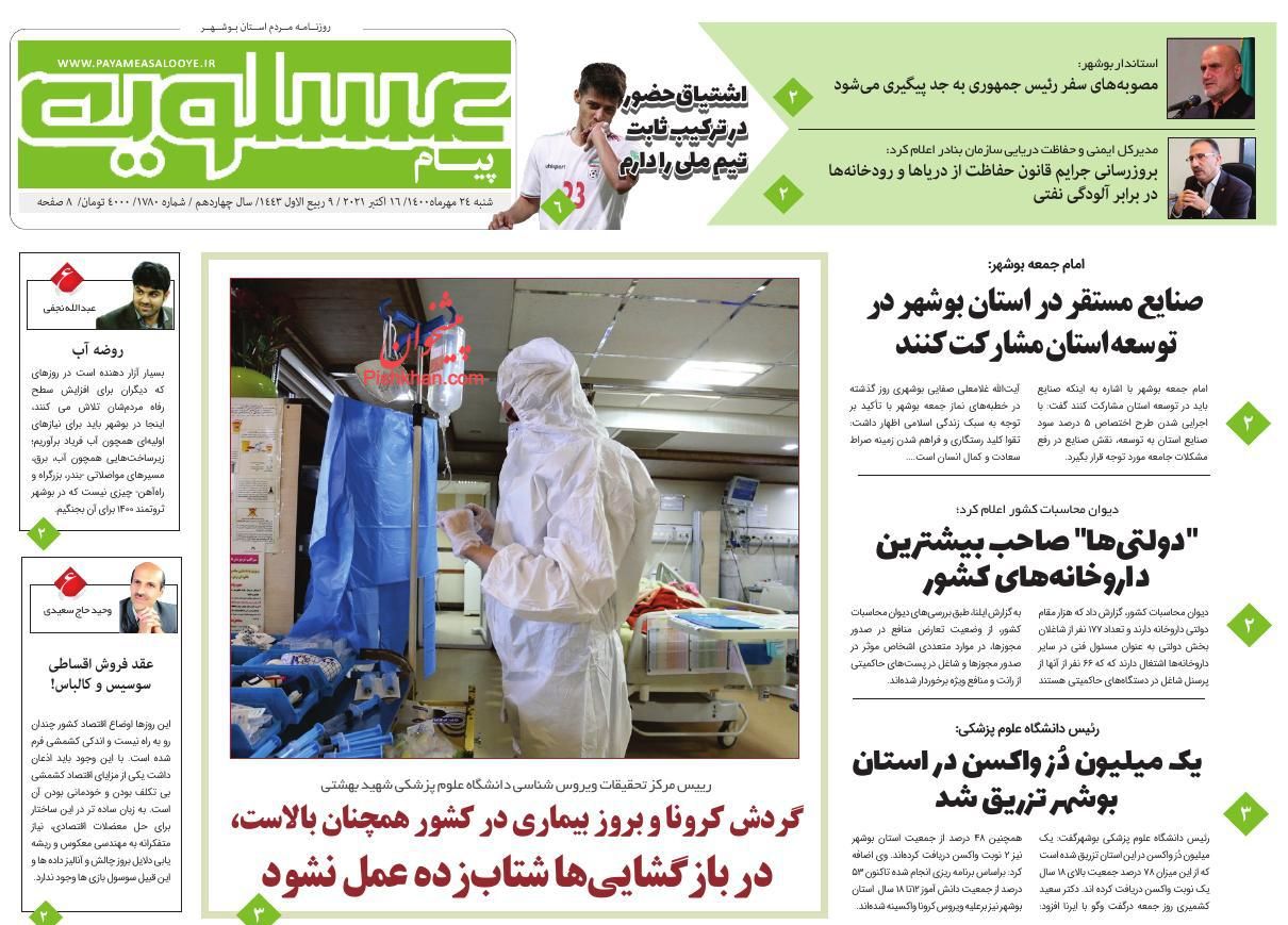 پیام عسلویه ، شنبه ۲۴ مهر