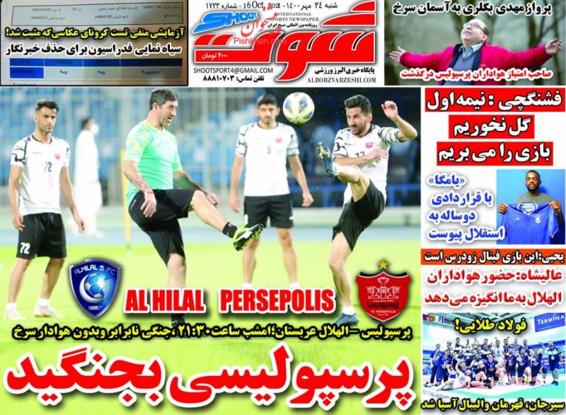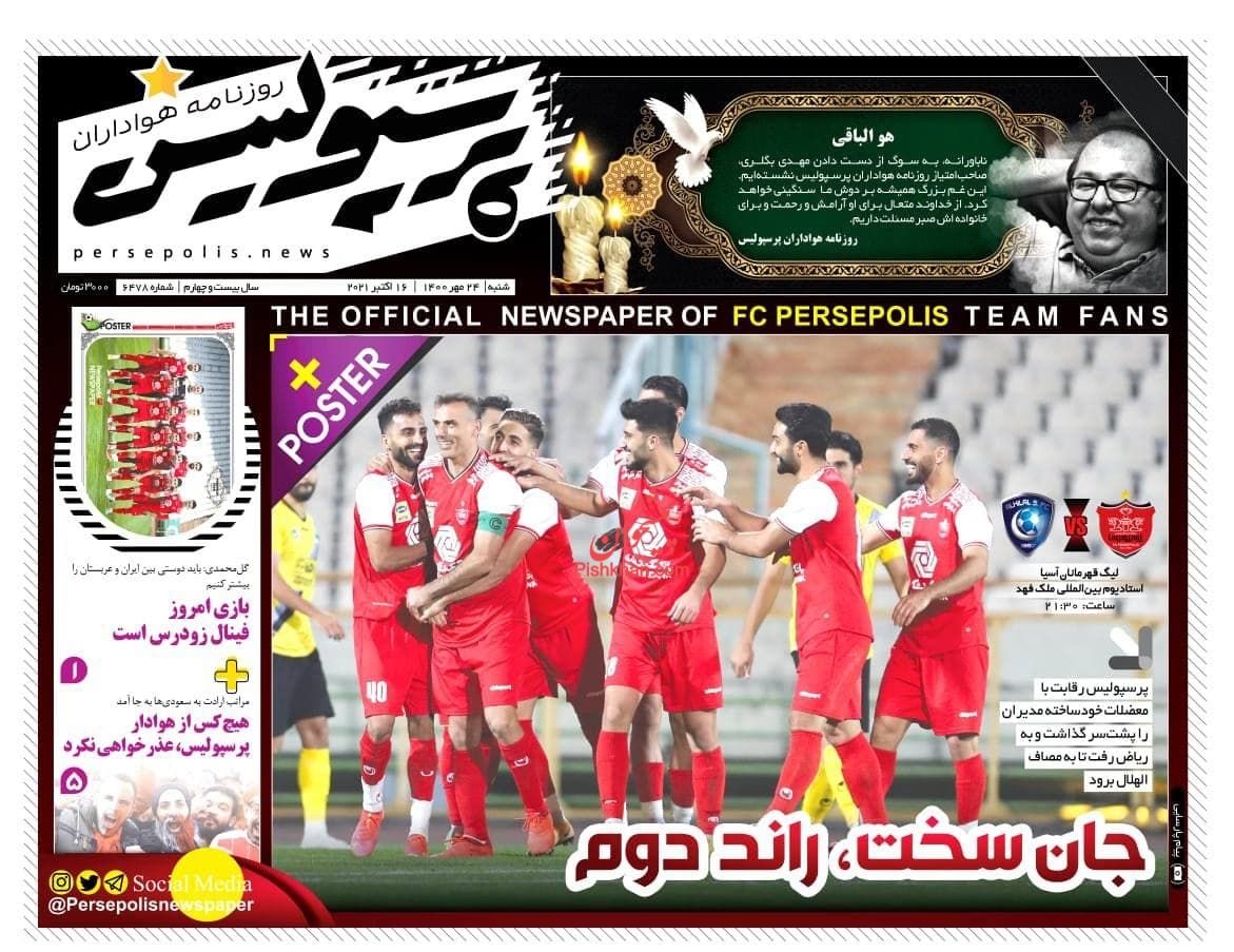 پرسپولیس ، شنبه ۲۴ مهر