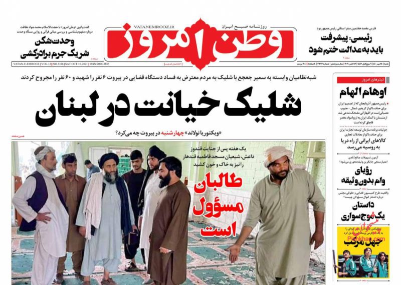 وطن امروز ، شنبه ۲۴ مهر