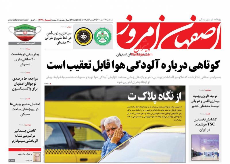 اصفهان امروز ، سهشنبه ۲۷ مهر