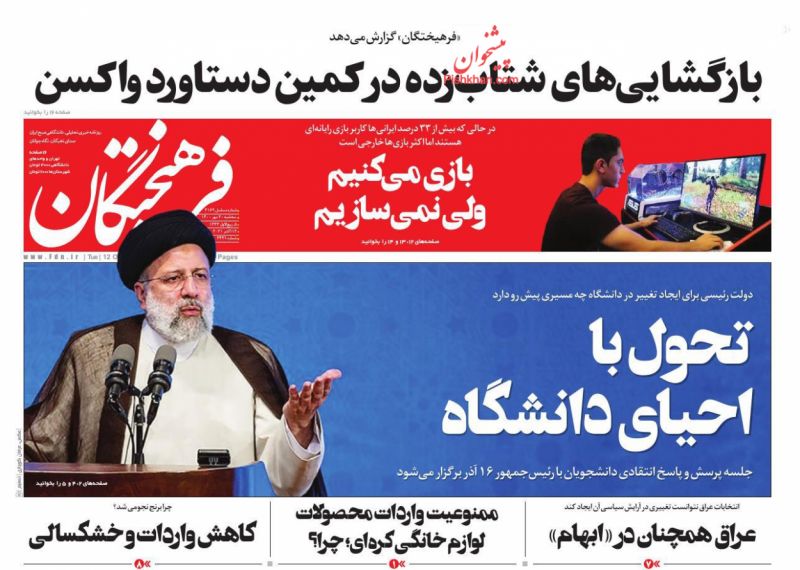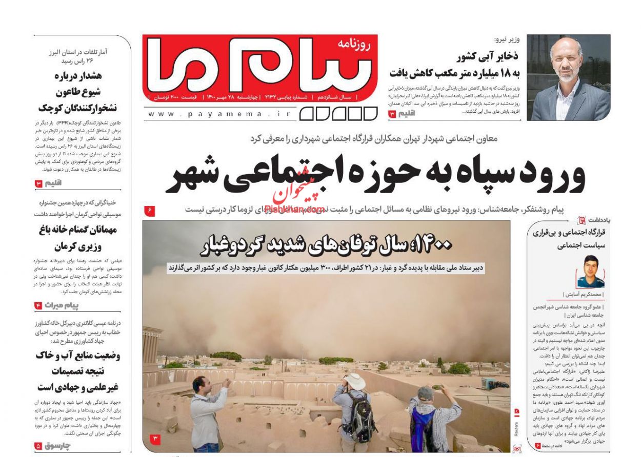 عصر ایرانیان ، چهارشنبه ۲۸ مهر