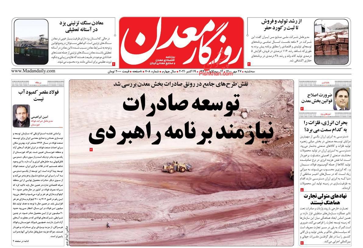 روزگار معدن ، سهشنبه ۲۷ مهر