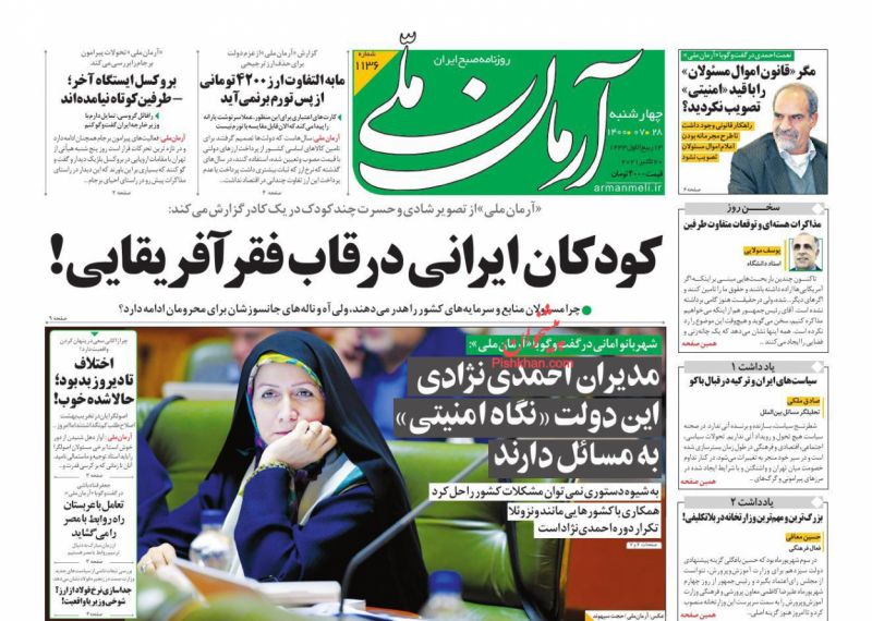 آرمان ملی ، چهارشنبه ۲۸ مهر