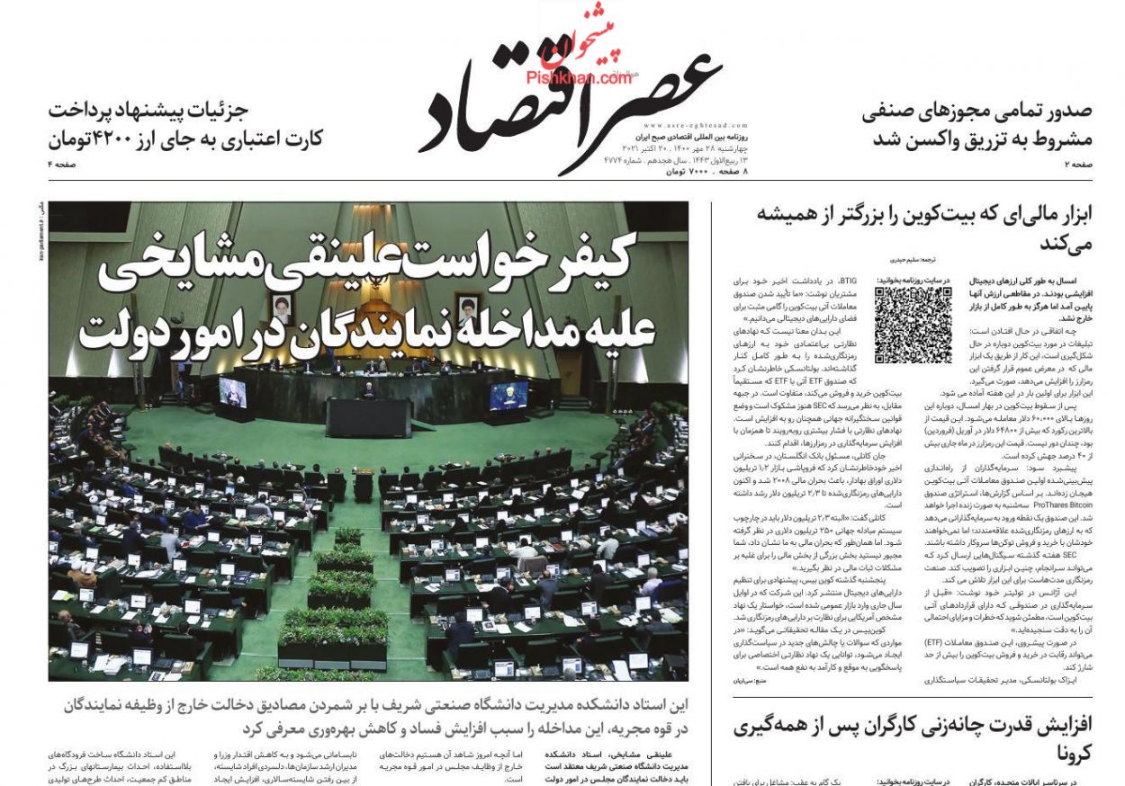 عصر اقتصاد ، چهارشنبه ۲۸ مهر