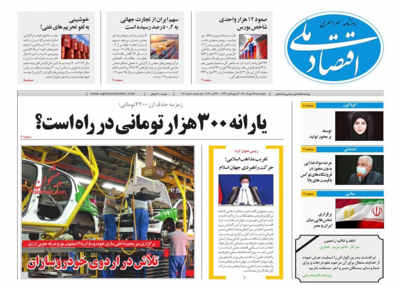 اقتصاد ملی ، چهارشنبه ۲۸ مهر