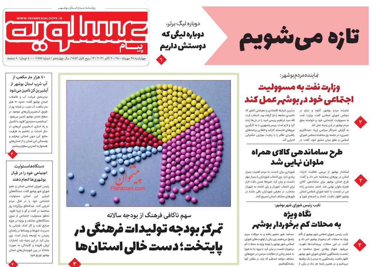 پیام عسلویه ، چهارشنبه ۲۸ مهر