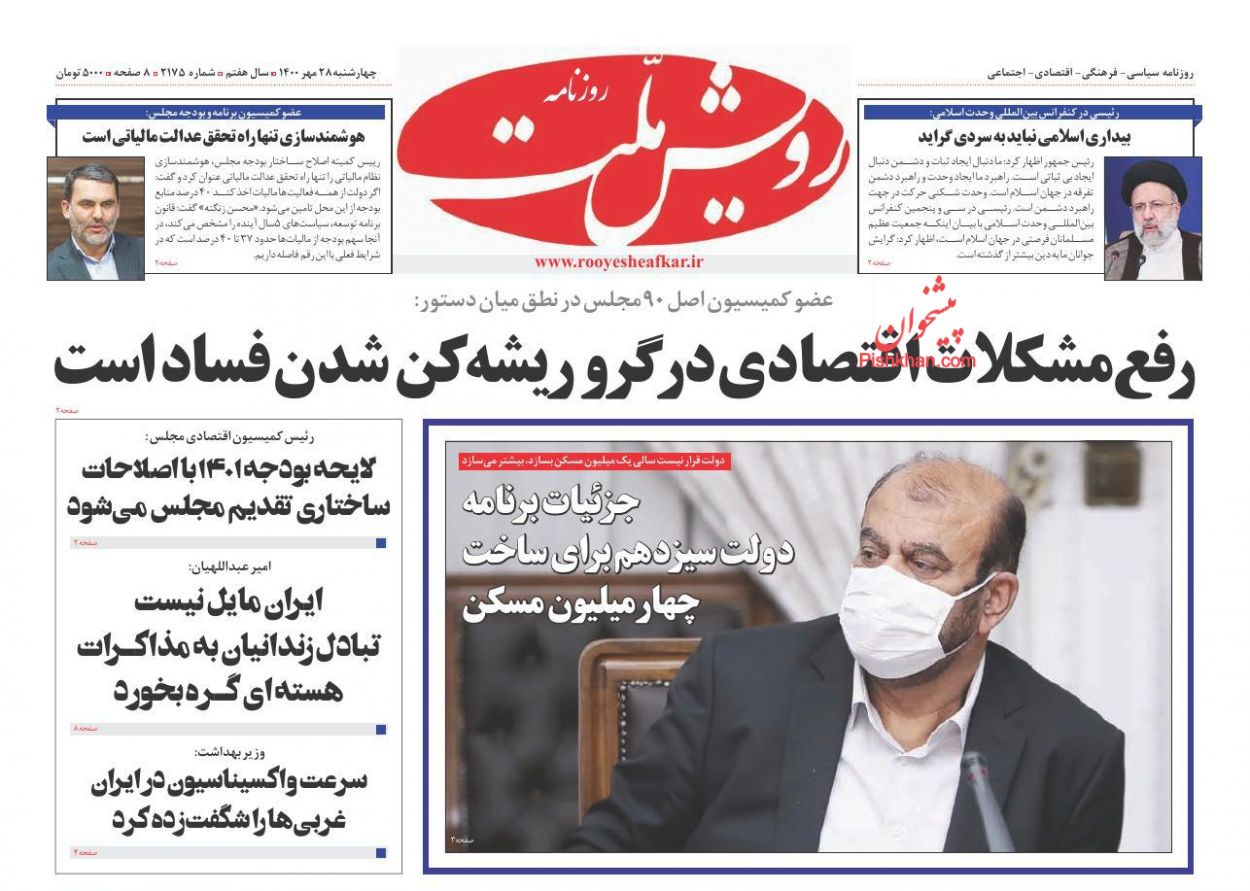 جمهوری اسلامی ، چهارشنبه ۲۸ مهر