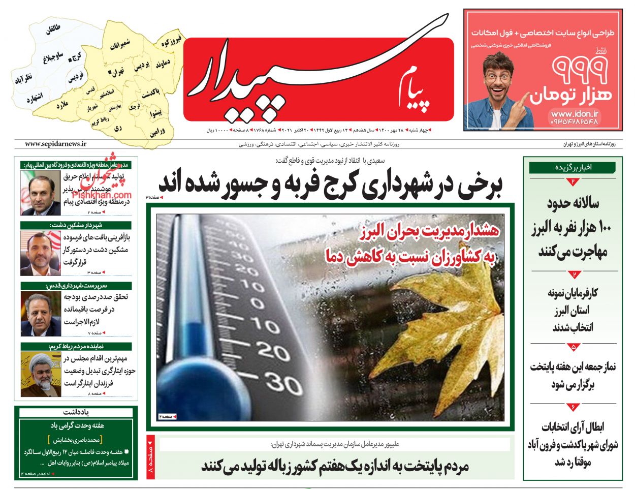 پیام سپیدار ، چهارشنبه ۲۸ مهر