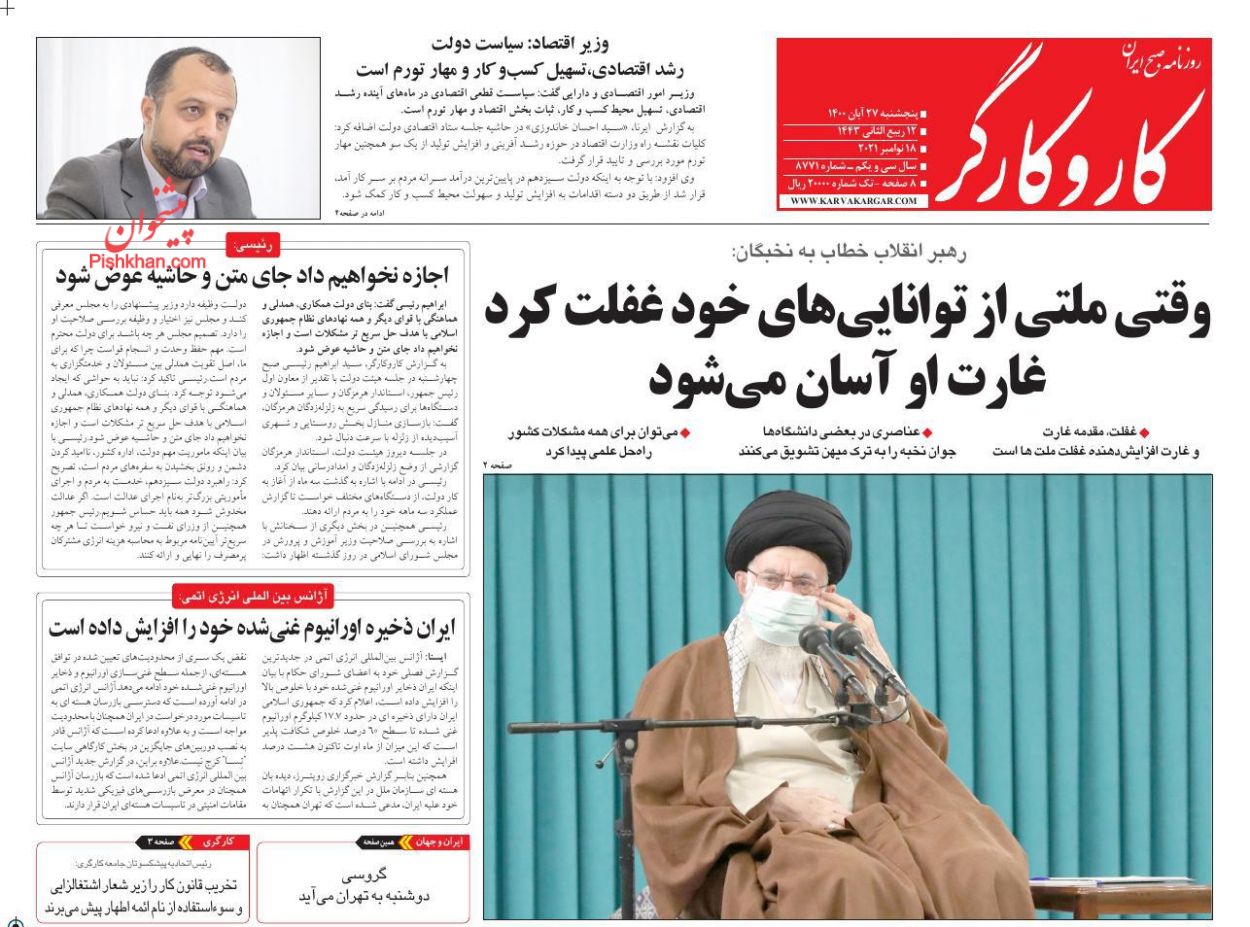 کار و کارگر ، پنجشنبه ۲۷ آبان