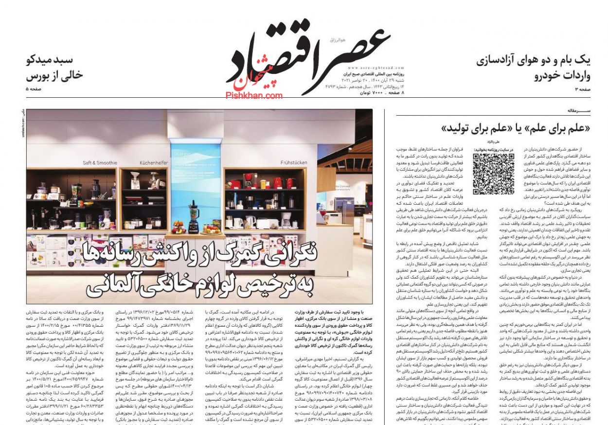اقتصاد سرآمد ، شنبه ۲۹ آبان