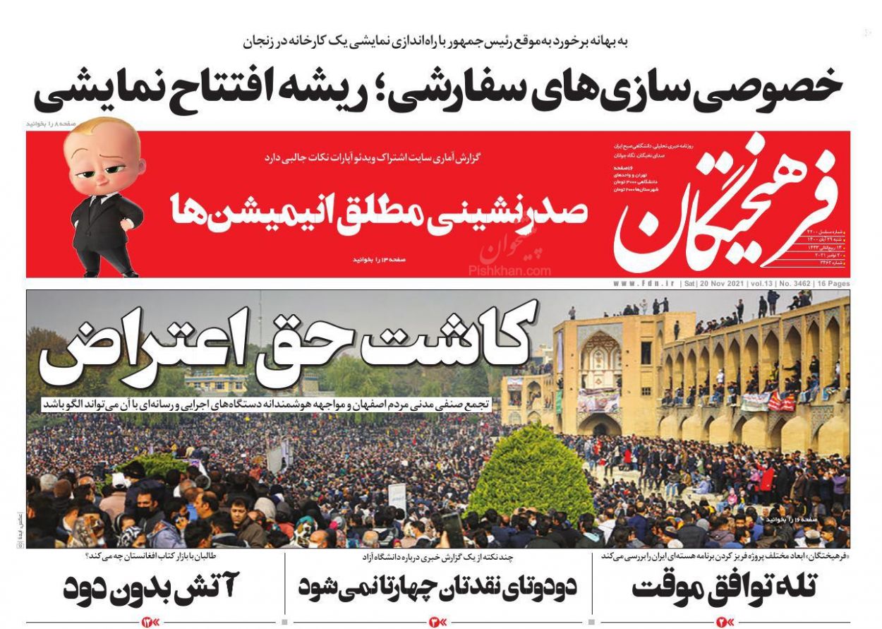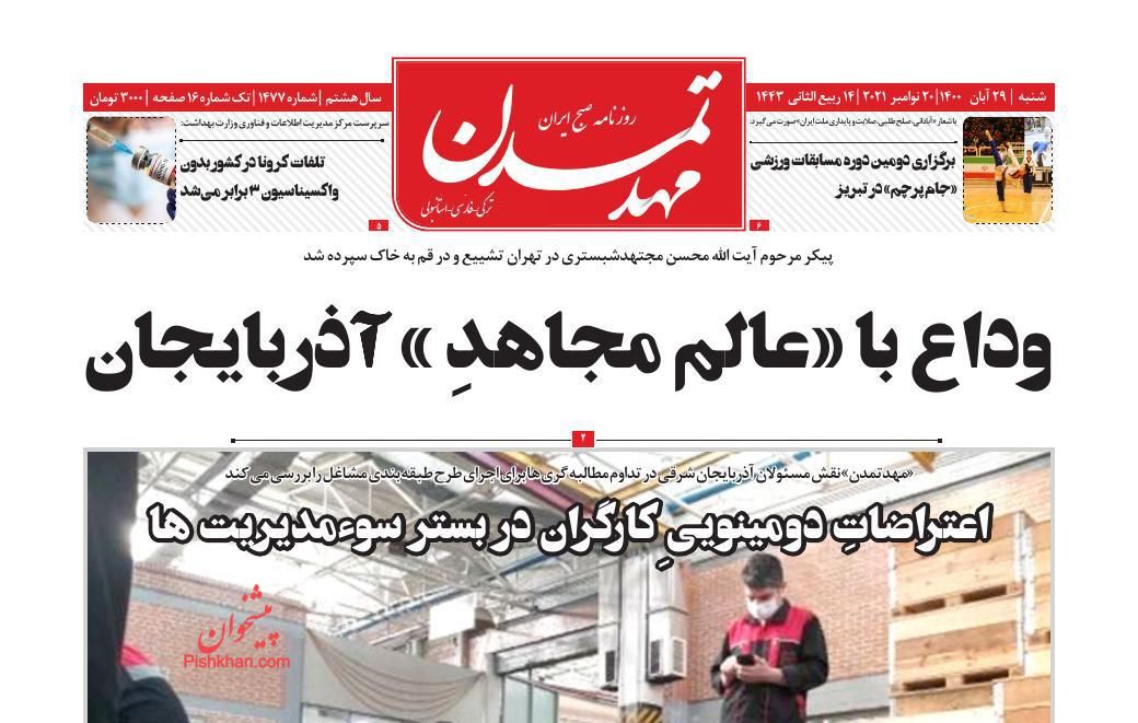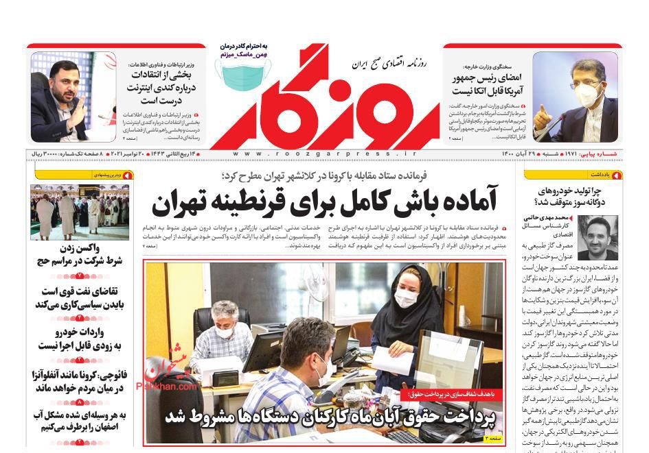 ایران ، شنبه ۲۹ آبان