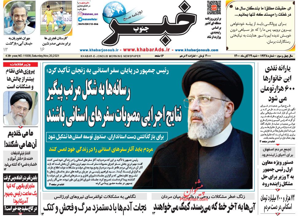 خبر جنوب ، شنبه ۲۹ آبان