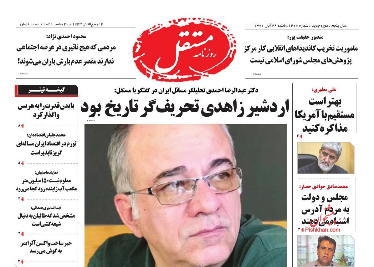 مستقل ، شنبه ۲۹ آبان