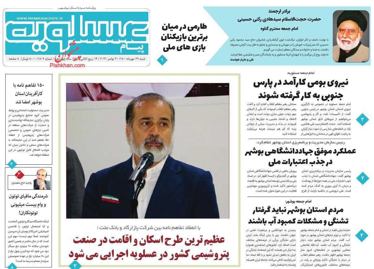 پیام عسلویه ، شنبه ۲۹ آبان