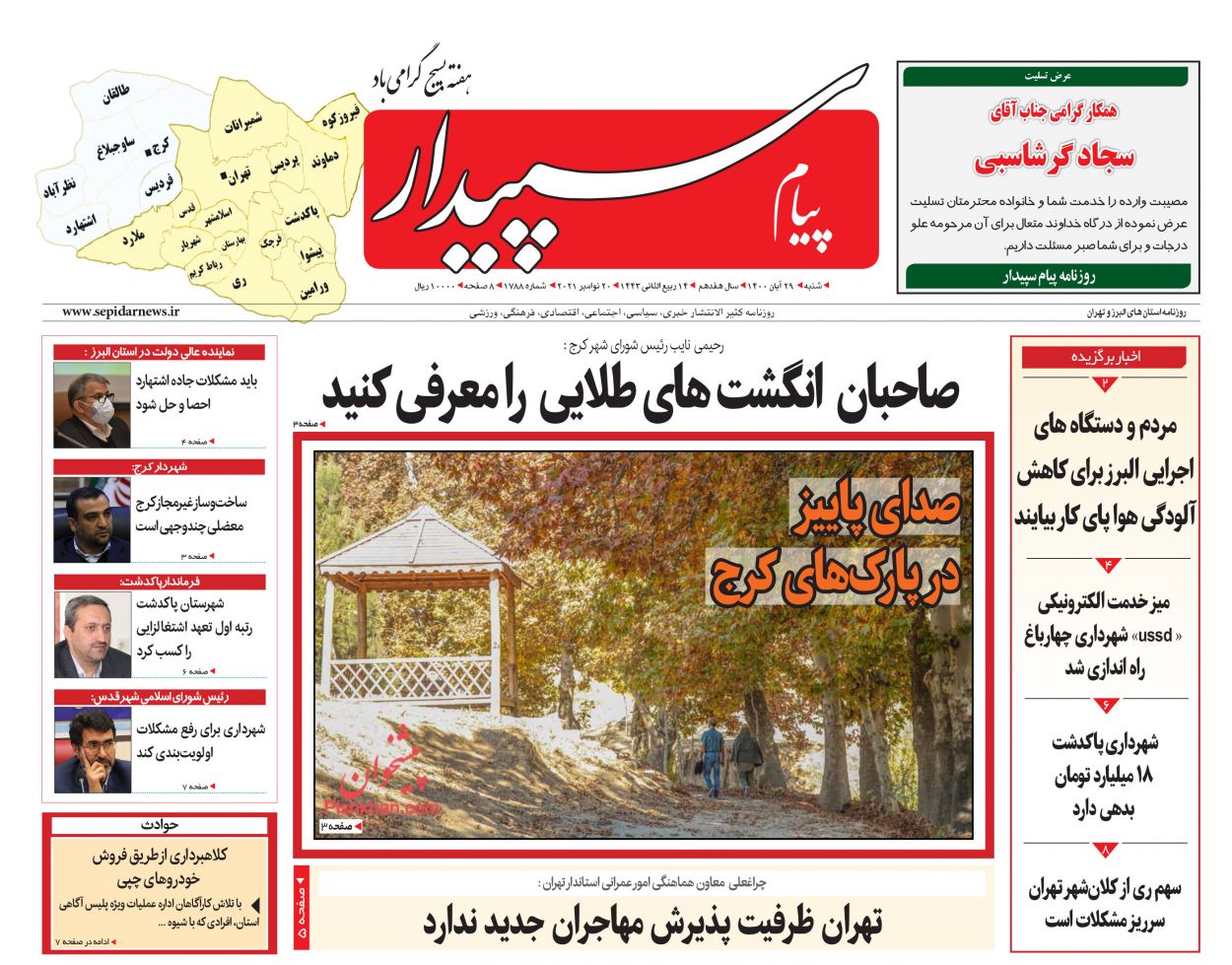 شهرآرا ، شنبه ۲۹ آبان