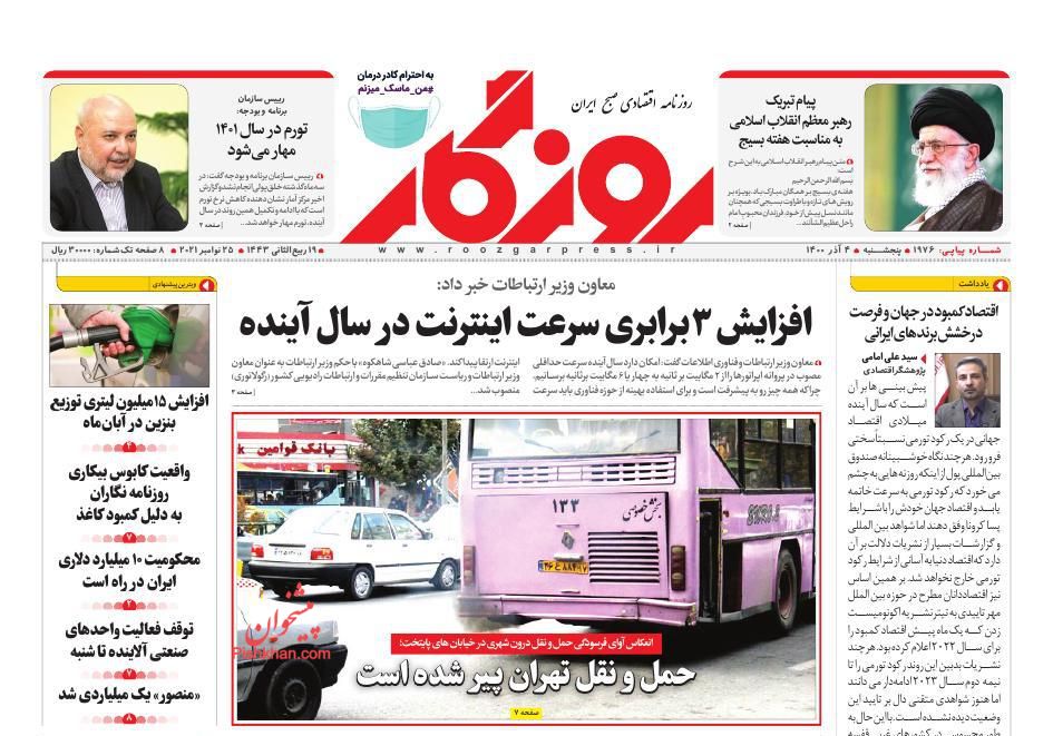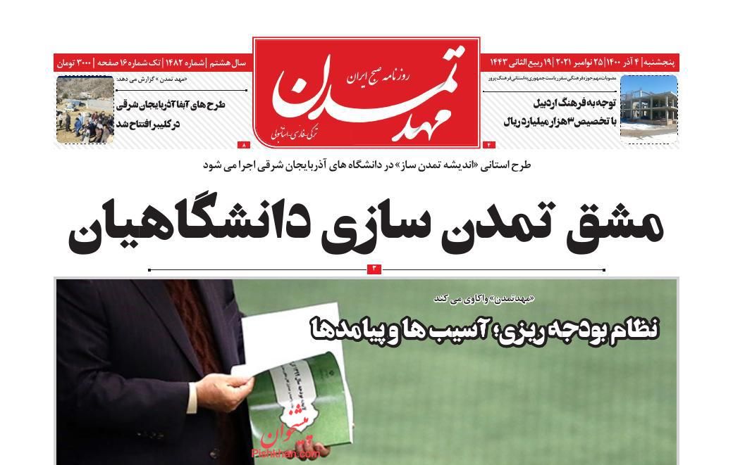 عصر ایرانیان ، پنجشنبه ۴ آذر