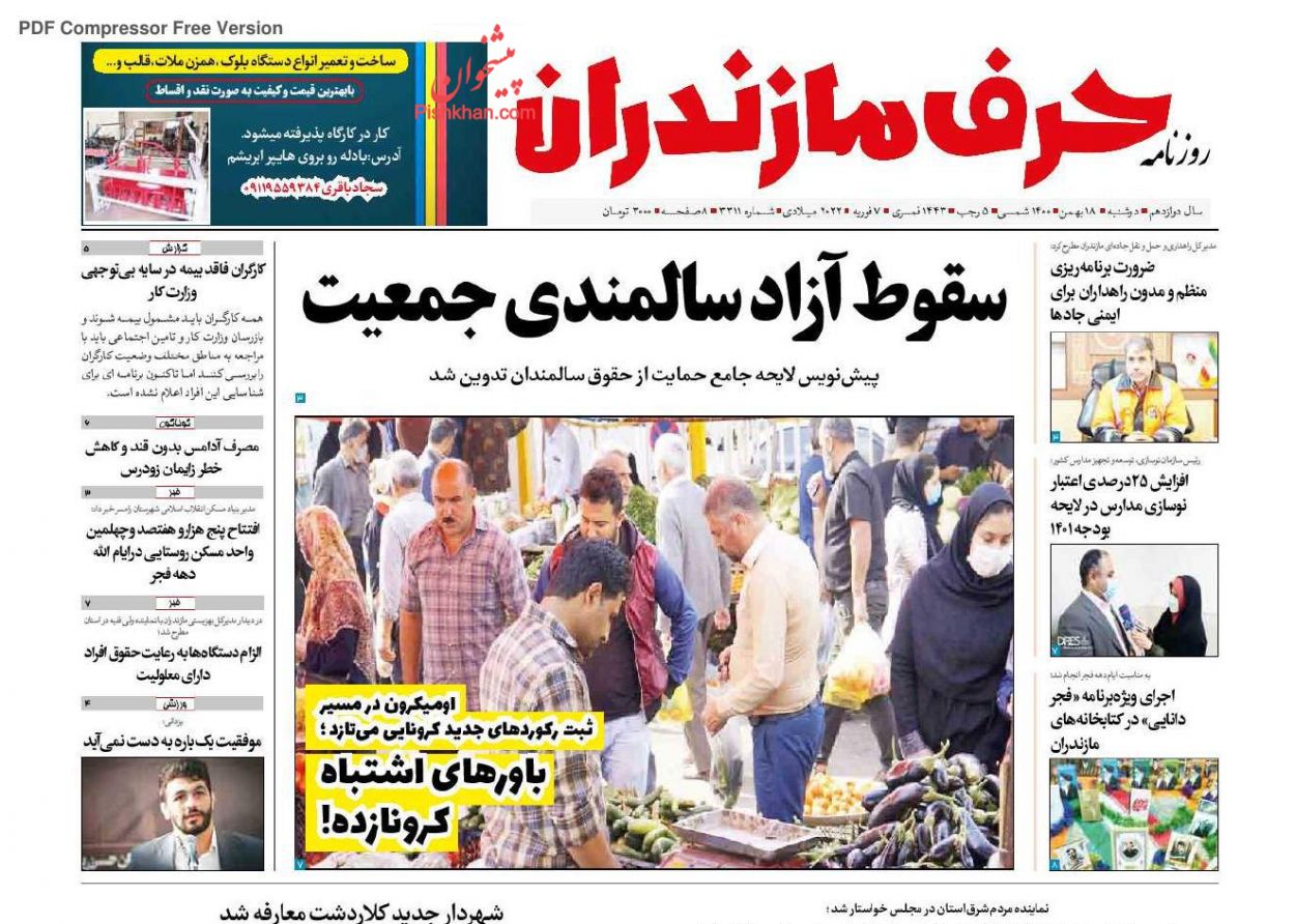 حرف مازندران ، دوشنبه ۱۸ بهمن