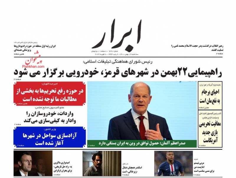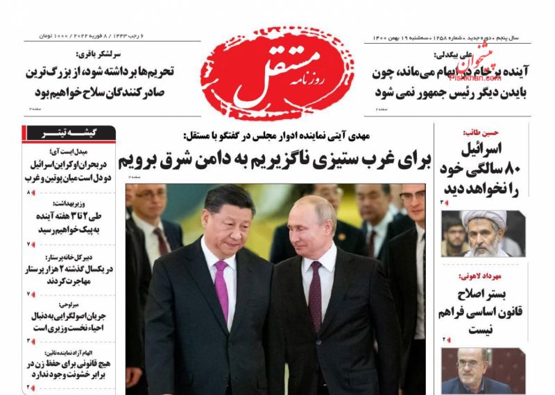 جمهوری اسلامی ، سهشنبه ۱۹ بهمن