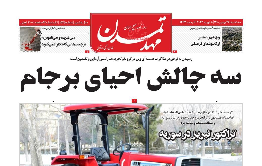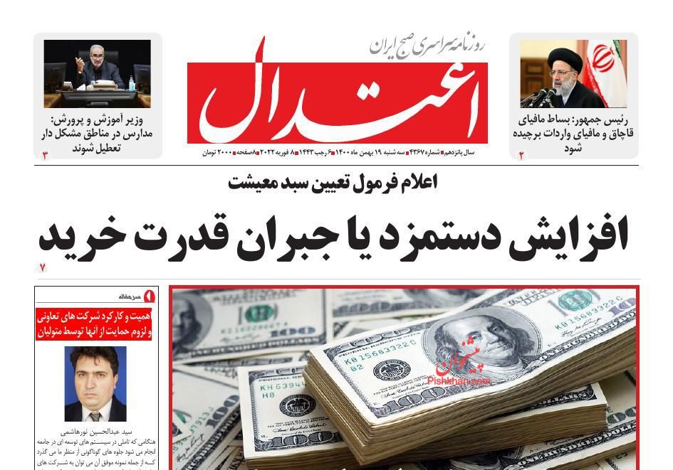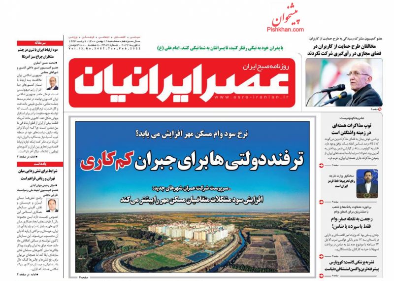 عصر ایرانیان ، سهشنبه ۱۹ بهمن