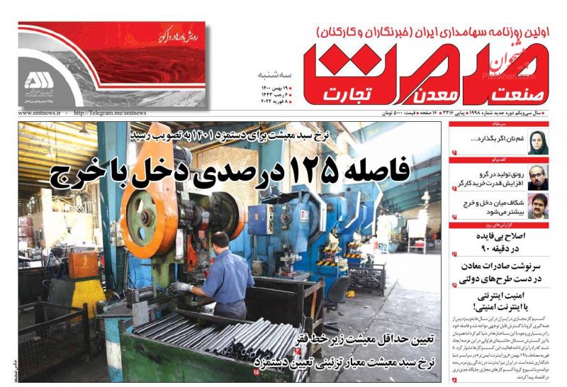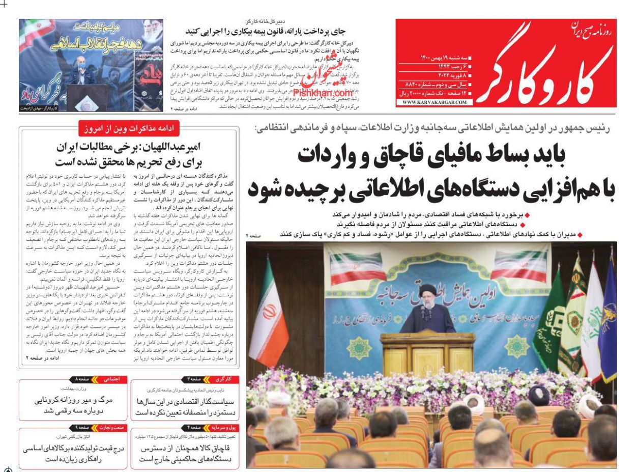 کار و کارگر ، سهشنبه ۱۹ بهمن