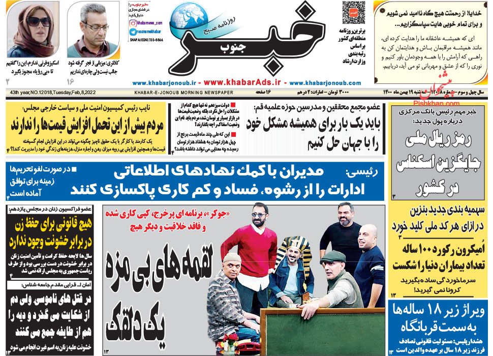 خبر جنوب ، سهشنبه ۱۹ بهمن