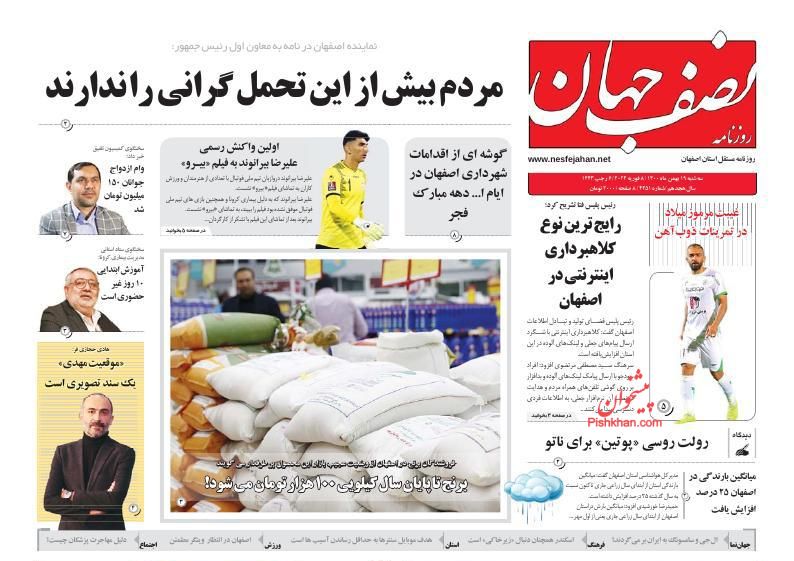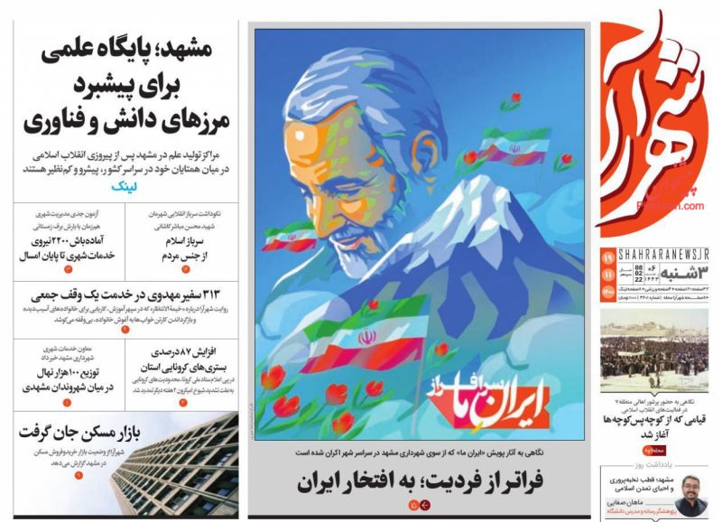 آفتاب یزد ، سهشنبه ۱۹ بهمن