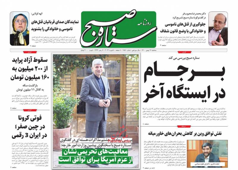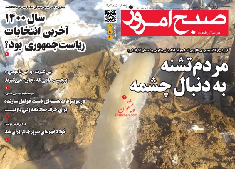 صبح امروز ، سهشنبه ۱۹ بهمن