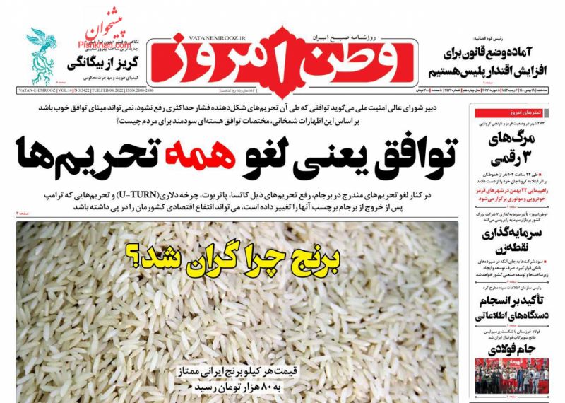وطن امروز ، سهشنبه ۱۹ بهمن