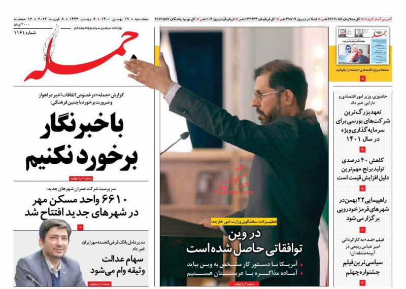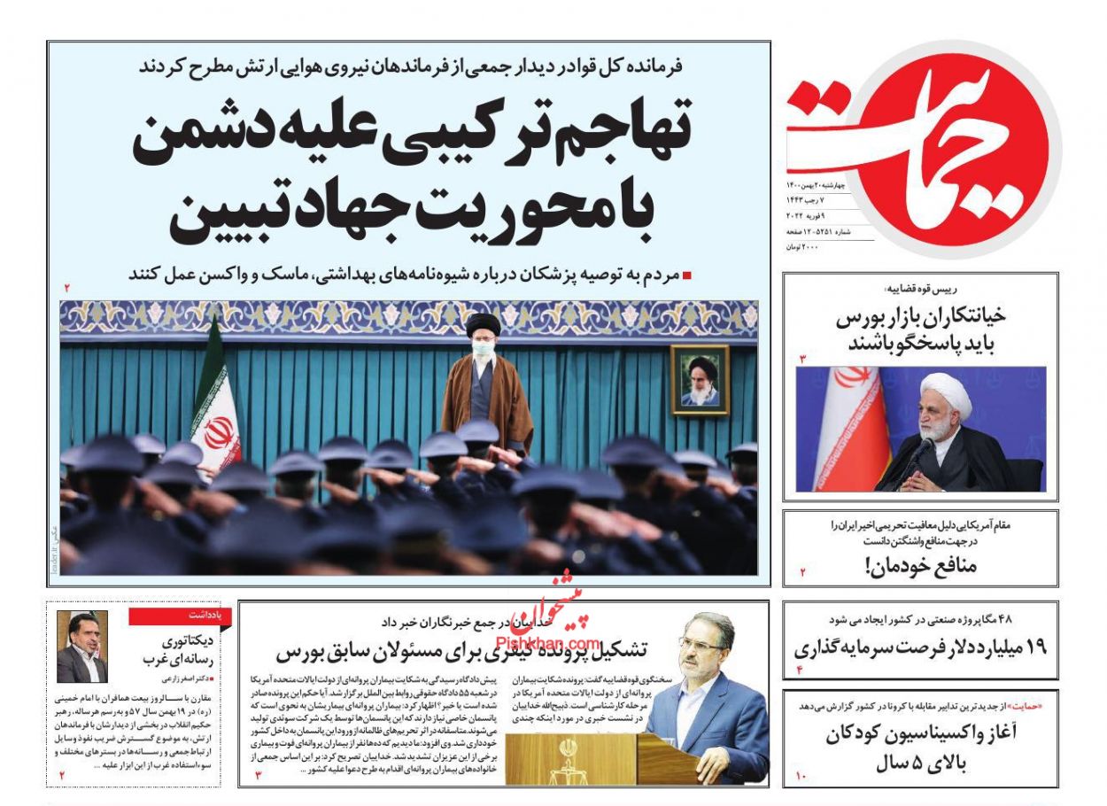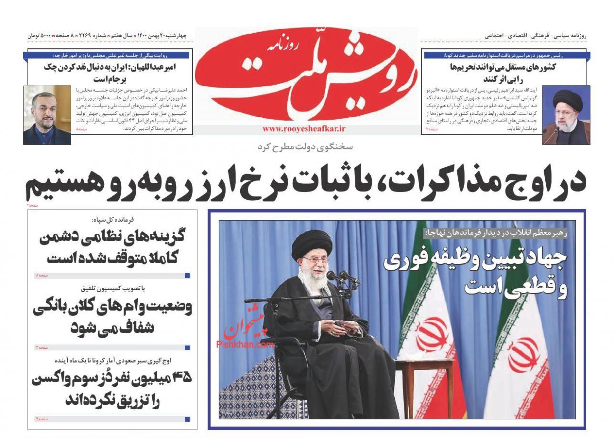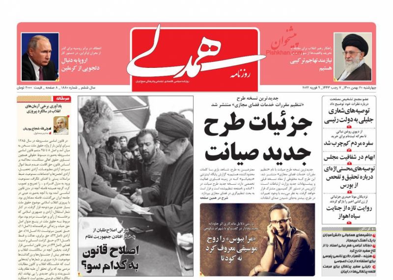 جمهوری اسلامی ، چهارشنبه ۲۰ بهمن