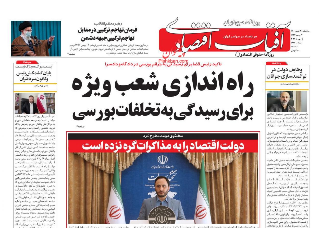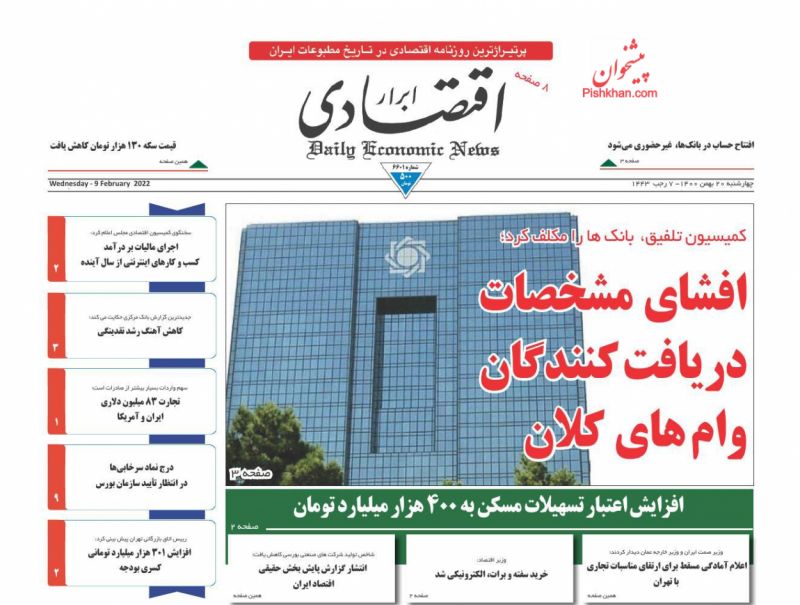 اقتصاد ملی ، چهارشنبه ۲۰ بهمن
