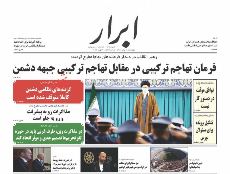 ابرار ، چهارشنبه ۲۰ بهمن