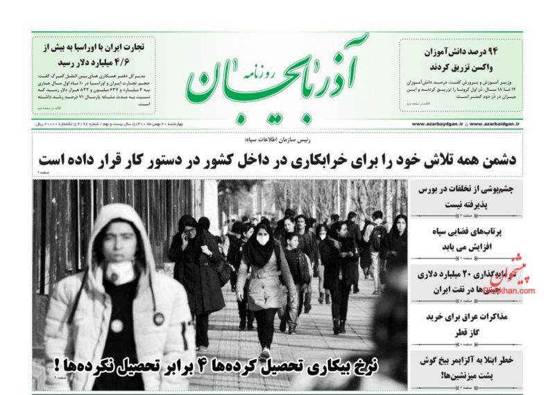 آذربایجان ، چهارشنبه ۲۰ بهمن