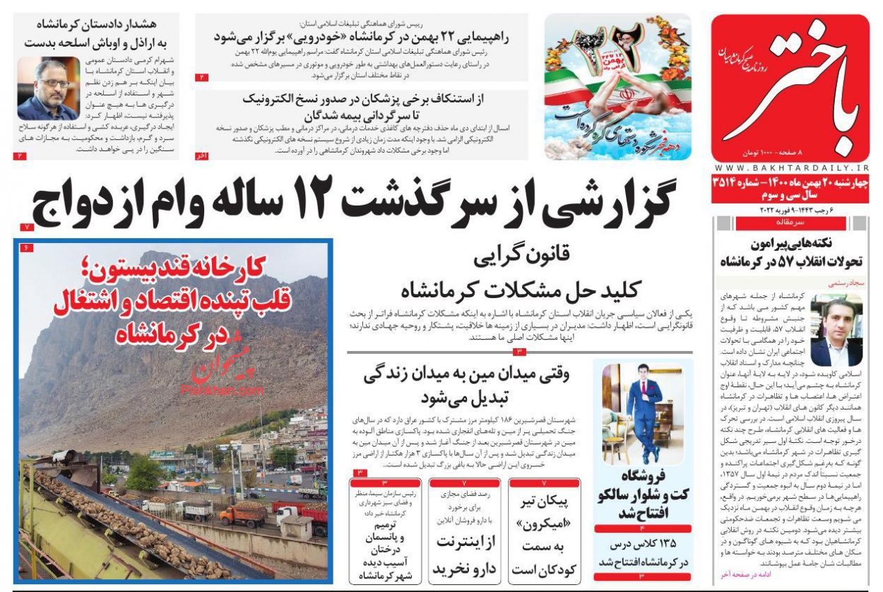 باختر ، چهارشنبه ۲۰ بهمن