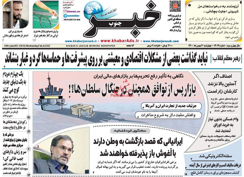 خبر جنوب ، چهارشنبه ۲۰ بهمن