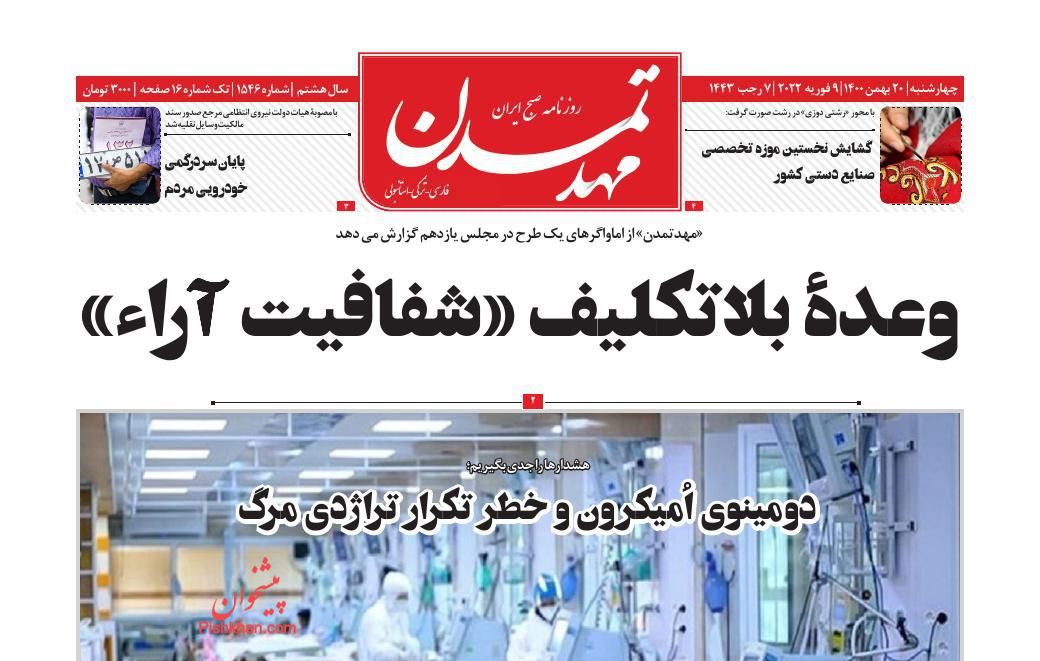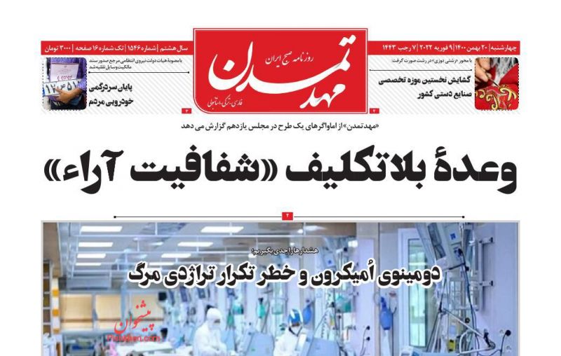ایران ، چهارشنبه ۲۰ بهمن