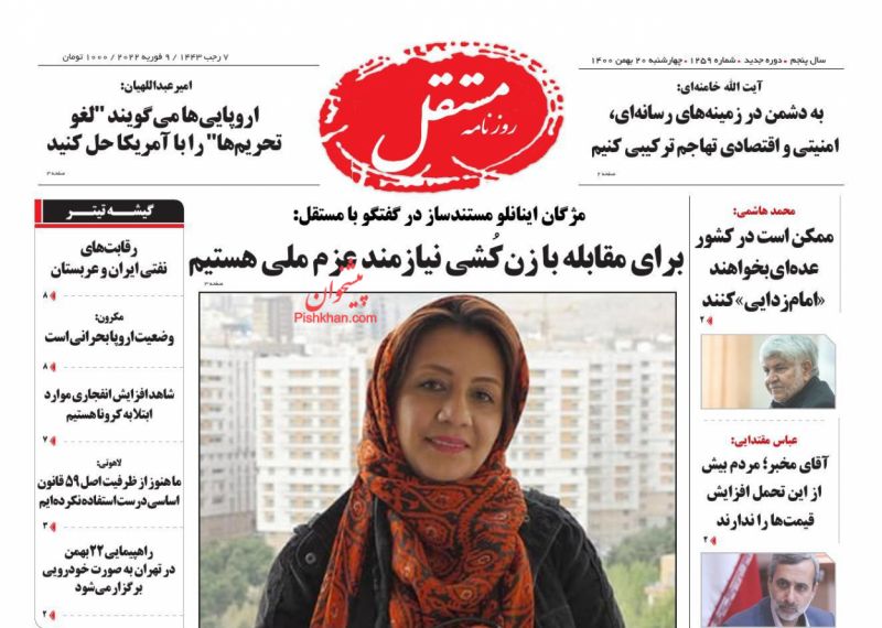 مستقل ، چهارشنبه ۲۰ بهمن
