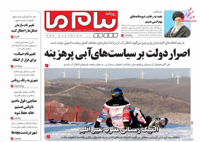 پیام ما ، چهارشنبه ۲۰ بهمن