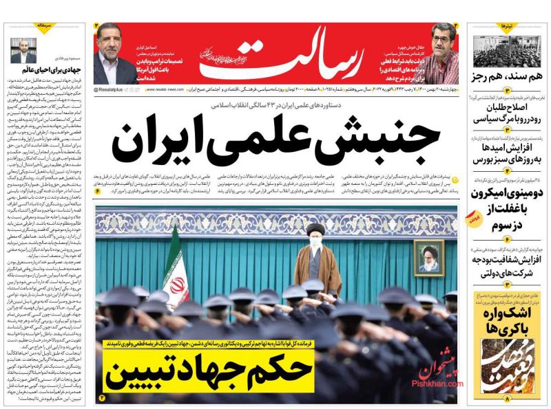رسالت ، چهارشنبه ۲۰ بهمن