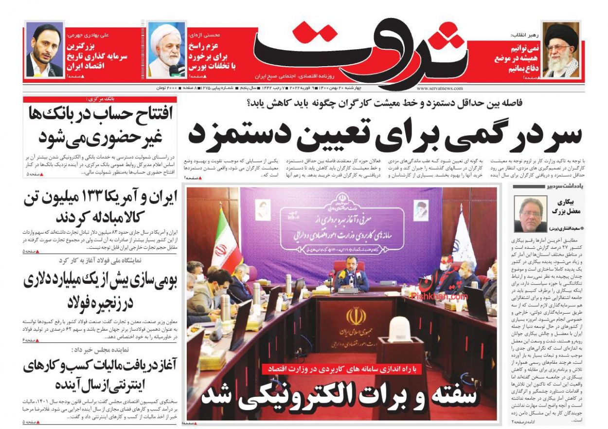 ابرار اقتصادی ، چهارشنبه ۲۰ بهمن