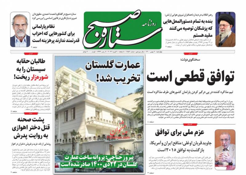 عصر ایرانیان ، چهارشنبه ۲۰ بهمن