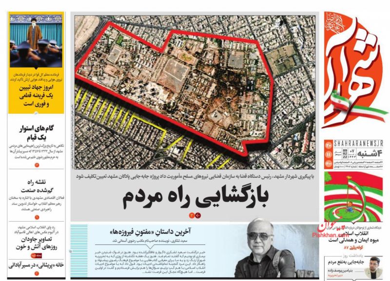 آفتاب یزد ، چهارشنبه ۲۰ بهمن