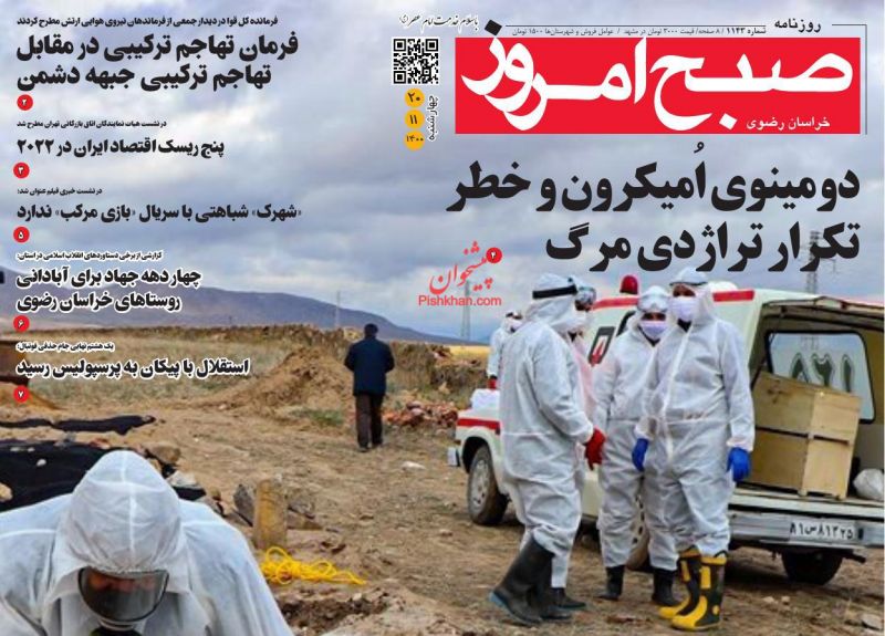 صبح امروز ، چهارشنبه ۲۰ بهمن