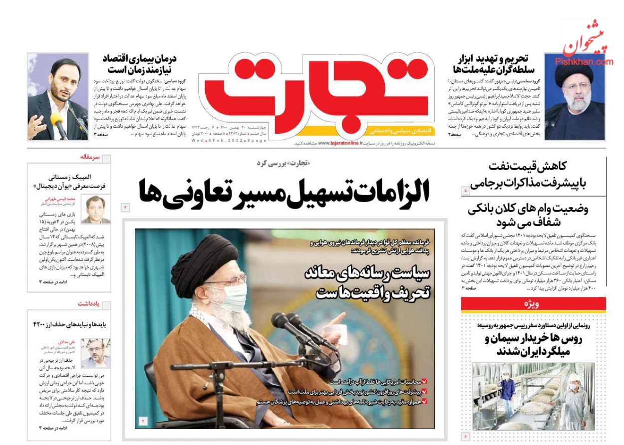 تجارت ، چهارشنبه ۲۰ بهمن