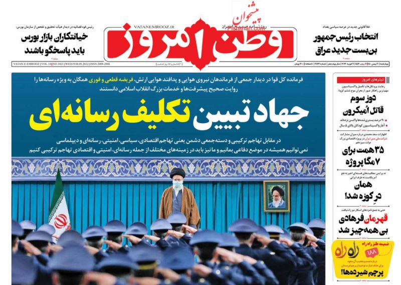 وطن امروز ، چهارشنبه ۲۰ بهمن