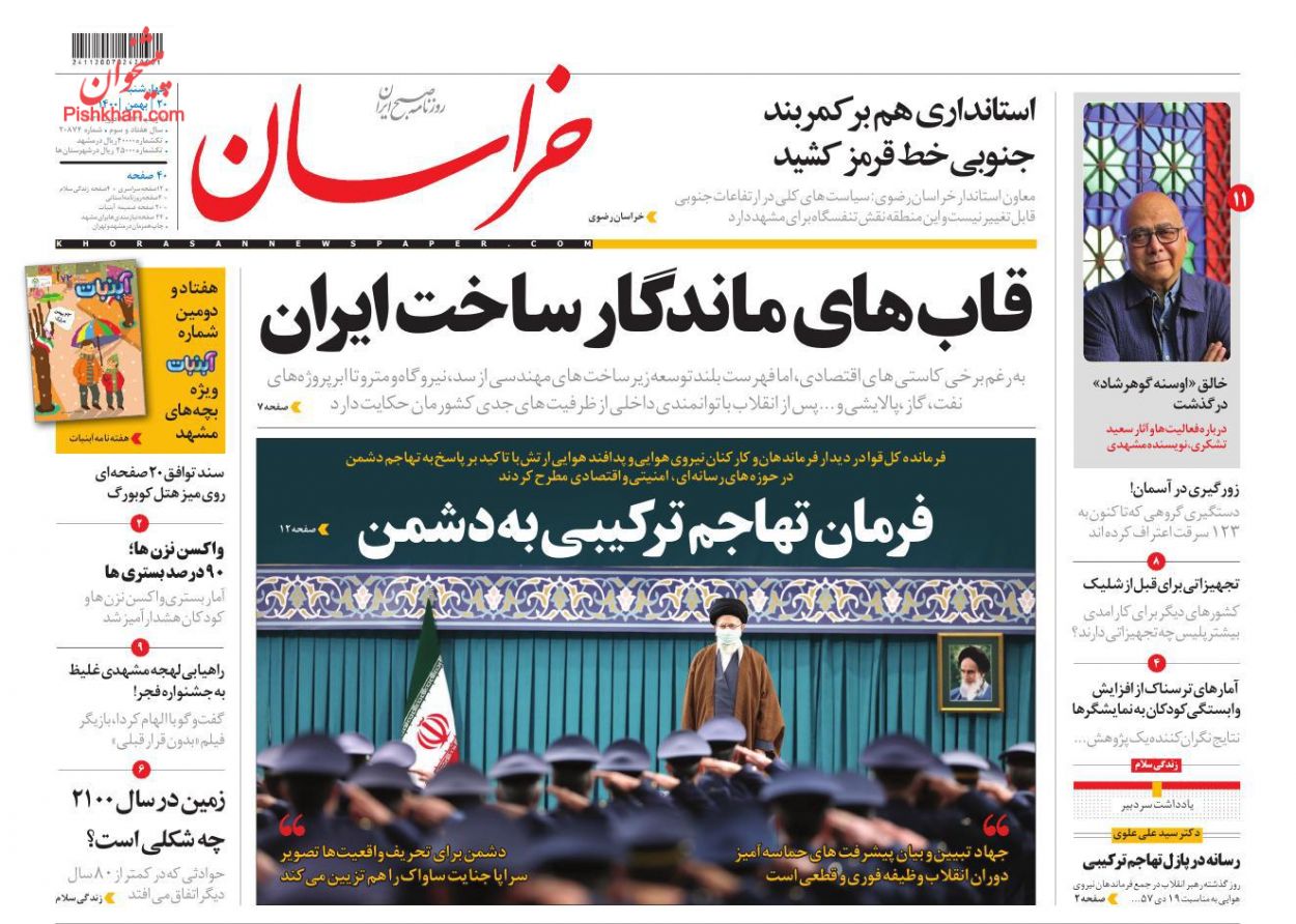 خراسان ، چهارشنبه ۲۰ بهمن